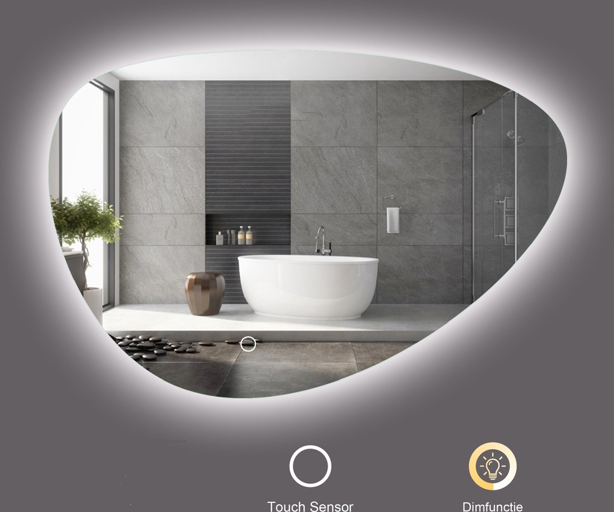 Deze organische badkamerspiegel met indirecte verlichting en spiegelverwarming is de perfecte aanvulling voor jouw badkamer. Door de harmonieuze combinatie van organische vormgeving, traploze lichtinstelling en praktische spiegelverwarming, bied je jezelf een luxe en functionele ervaring. Maak jouw badkamer compleet met deze trendsettende spiegel en creëer jouw persoonlijke spa-ervaring in huis.